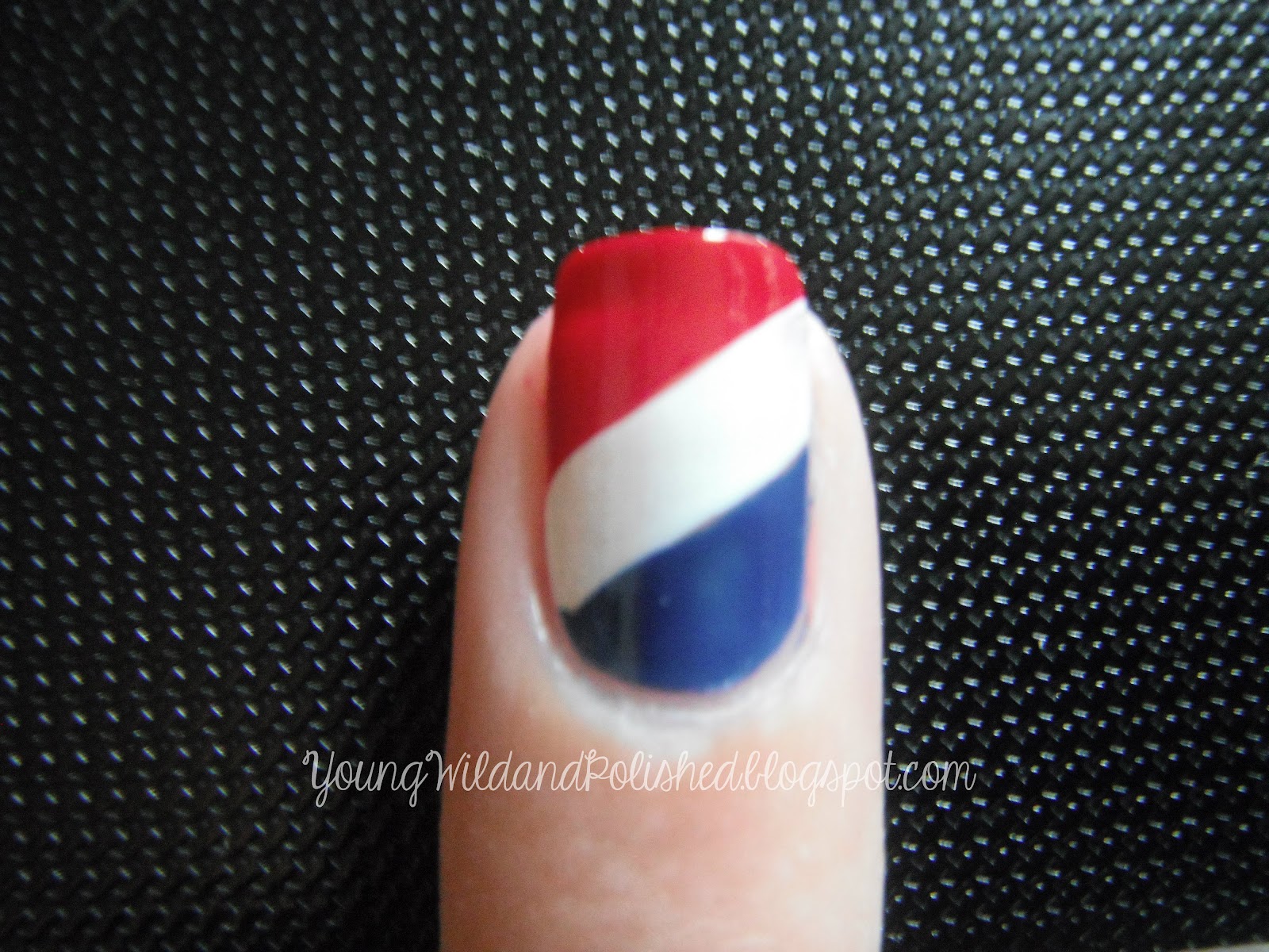 The red I used was Essie Forever Yummy, which is your classic run of the mill red, and I must say, it is quite pretty. The blue was China Glaze Man Hunt from the 2012 Safari Collection. I haven't swatched this one yet but, man oh man, she is going to be one of the first fall colors I put on these tootsies. The white was China Glaze White on White, my go to white.